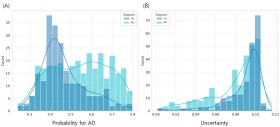 Taeho Jo, Eun Hye Lee, for the Alzheimer's Disease Neuroimaging Initiative (ADNI) and the Alzheimer's Disease Sequencing Project (ADSP), Briefings in Bioinformatics (2025) TrUE-Net combines transformer and random forest models with Monte Carlo Dropout to provide uncertainty-aware AD classification from WGS data. Analyzing 1,050 individuals (607 AD, 443 controls) from ADNI, the framework achieved overall accuracy of 65.1% with AUC 0.664. By stratifying predictions based on uncertainty, the model identified high-confidence predictions (24.6% of samples) with 72.9% accuracy and F1 0.821. This approach enables identification of reliable predictions while acknowledging inherent uncertainty in genomic classification, providing a framework for more informed clinical decision-making.